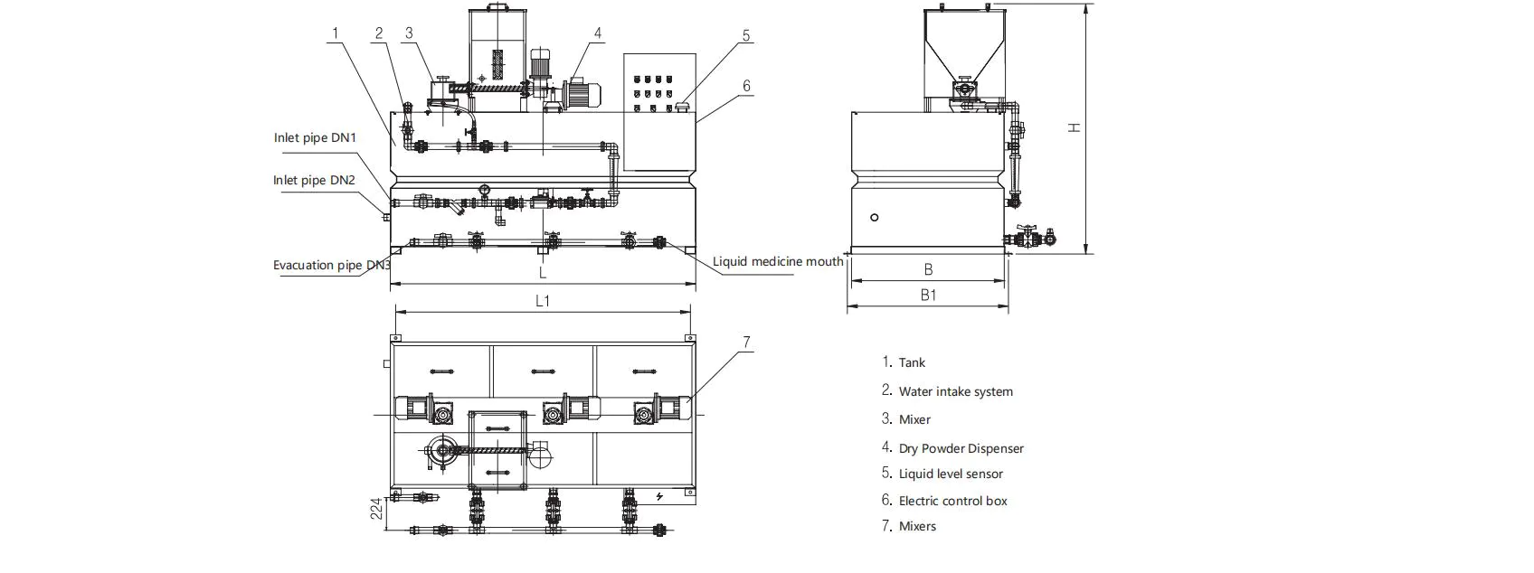 Thiết bị định lượng tích hợp được trang bị bể chứa hóa chất, hóa chất có thể được tự động vận chuyển đến hệ thống định lượng thông qua đường ống. Tùy theo nhu cầu xử lý nước thải, thiết bị có thể tự động điều chỉnh lưu lượng vận chuyển để đảm bảo cung cấp đủ hóa chất.